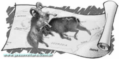 Os próximos estudos vão nos revelar uma das mais incríveis e fascinantes profecias de todo o livro de Daniel. Elas revelarão sobre os eventos que estão acontecendo no céu que claramente indicam a aproximação do final da história da terra. Eventos que são especificamente boas novas para o povo de Deus, mas também são especificamente más notícias para o poder do chifre pequeno. A profecia de Daniel 8 e 9 é a mensagem principal encontrada no livro de Daniel. Aqui Daniel dá-nos a profecia de mais longo tempo de toda a Bíblia. O PANORAMA DOS IMPÉRIOS As profecias de Daniel são melhores entendidas quando seguem certos princípios de interpretação, tais como a repetição e a expansão. As grandes profecias de Daniel continuamente vão tratar da mesma história, repetindo os impérios do passado. Mas, cada sucessão profética adicionará mais detalhes sobre o tempo do fim. Daniel 8 e 9 vão discorrer parte da mesma seqüência de Daniel 2 e 7, retratando os impérios da Medo-Pérsia, Grécia, Roma e o chifre pequeno. 1. Quando Daniel teve a visão de Daniel 8? (Daniel 8:1, 2) “...No ano __________ do reinado do rei Belsazar...” NOTA: Esta visão é dada próximo ao fim do reinado de Babilônia. Interessantemente, vamos ver que ela não começou com a Babilônia, mas com a Medo-Pérsia. 2. Que animal viu Daniel dando marradas para o Ocidente, para o norte e para o sul e quem este animal representa? (Daniel 8:3, 4 e 20) “...eis que, diante do rio, estava um ____________, o qual tinha ________________ ...Aquele _____________ com __________________, que viste, são os reis da _________ e da _________...” “...e este ______ tinha um ___________ notável entre os olhos...Mas o bode peludo é o rei da ___________; o grande chifre entre os olhos é o _____________ rei...” NOTA: Perceba como a profecia segue a mesma seqüência como em Daniel 2 e 7. Depois da Medo-Pérsia veio a Grécia. O notável chifre representa o primeiro rei da Grécia, Alexandre o Grande. A expansão macedônica em direção à Ásia, iniciada na época de Filipe II, prosseguiu com Alexandre. Em 334 A.C., na batalha de Grânico, na Ásia Menor, foram derrotados os persas. Conquistadas as cidades gregas do litoral, até então submetidas ao domínio persa, o exército de Alexandre venceu novamente os persas, na batalha de Isso (333 A.C.), dominando a Fenícia e a Palestina. No Egito, Alexandre, proclamado ‘Filho de Amom’ pelos sacerdotes, empreendeu a fundação da cidade de Alexandria, no delta do rio Nilo, que logo se projetaria como centro comercial e cultural. Na batalha de Arbelas ou Gaugamelas (331 A.C.), os persas de Dario III foram derrotados e conquistadas as capitais do Império Aquemênida. 4. O que o bode fez ao carneiro? (Daniel 8:6, 7) “...e o bode o lançou por terra, e o _________ aos pés...” NOTA: A expansão macedônica em direção à Ásia, iniciada na época de Filipe II, prosseguiu com Alexandre. Em 334 A.C., na batalha de Grânico, na Ásia Menor, foram derrotados os persas. Conquistadas as cidades gregas do litoral, até então submetidas ao domínio persa, o exército de Alexandre venceu novamente os persas, na batalha de Isso (333 A.C.), dominando a Fenícia e a Palestina. No Egito, Alexandre, proclamado ‘Filho de Amom’ pelos sacerdotes, empreendeu a fundação da cidade de Alexandria, no delta do rio Nilo, que logo se projetaria como centro comercial e cultural. Na batalha de Arbelas ou Gaugamelas (331 A.C.), os persas de Dario III foram derrotados e conquistadas as capitais do Império Aquemênida. 5. O que aconteceu a grandeza de seu poder? O que tomou o seu lugar? (Daniel 8:8 e 22)